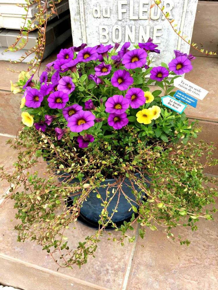 以前の寄せ植えがスカスカになっていたのでミリオンベルのバナナ&ブルーベリーを植えました💜💛💜
