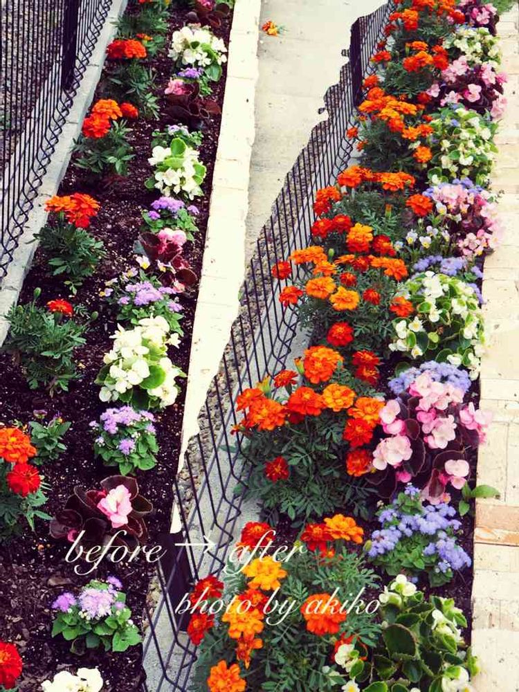 去年の夏の細長花壇のビフォーアフター