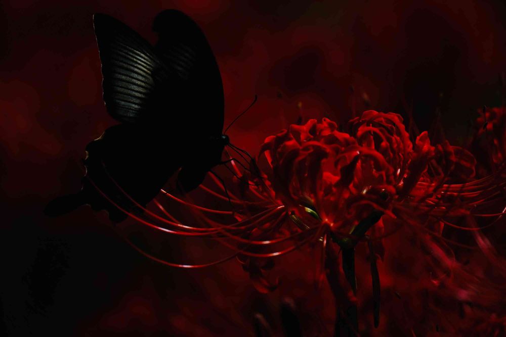 ヒガンバナ&クロアゲハ