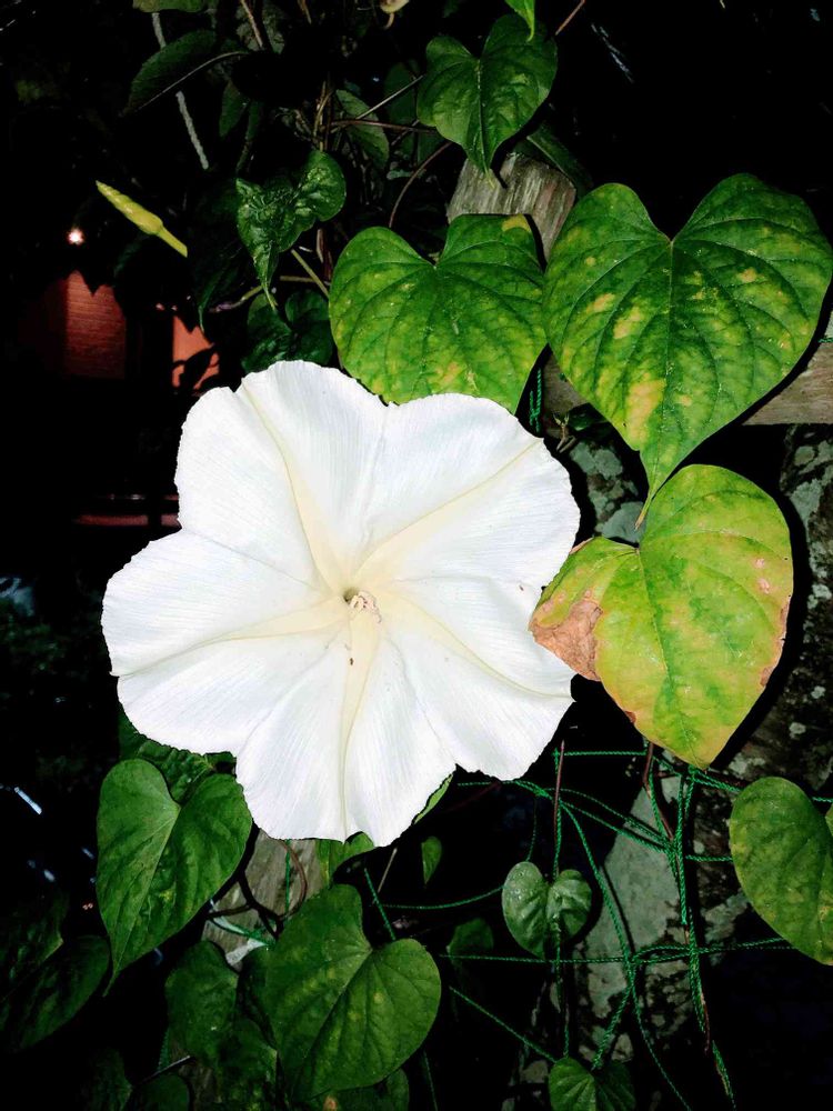 咲かないのかなあ、と思っていた夕顔が咲きました。手のひらより大きいぐらい😍