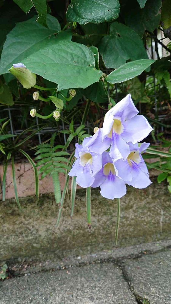 6プーままさん、教えてくださりありがとうございます。ツンベルギアのようです。初めて聞く(見る)名前で、いろんな種類があるようで、これからまた散歩が楽しくなりそうです。ありがとうございました。