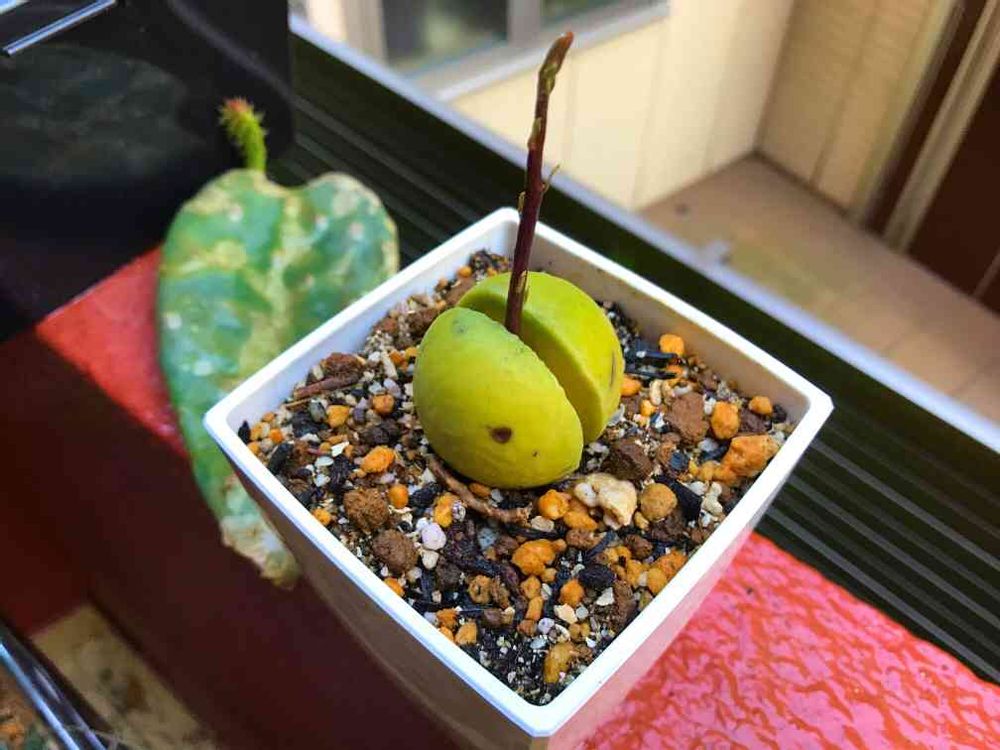 アボカドの水耕栽培の発芽に成功し、鉢に移して5日目🥑