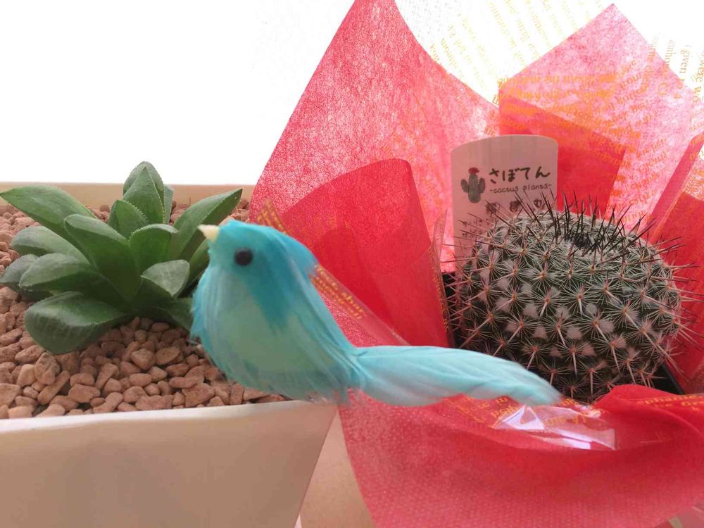 お誕生日おめでとうございます~うちの主人も今日、誕生日です。青い鳥もサボテンもかわいい~ですね。よい一日を!