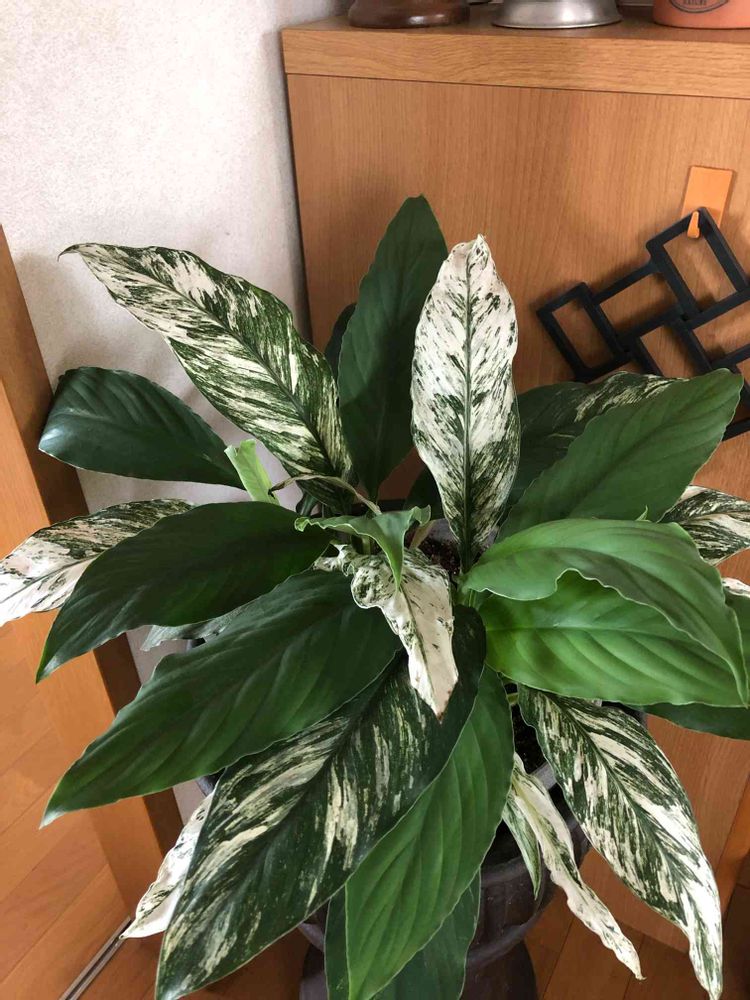 だんだん斑入りの葉が減って普通の緑のスパティフィラムになるって書いてあったよ😭