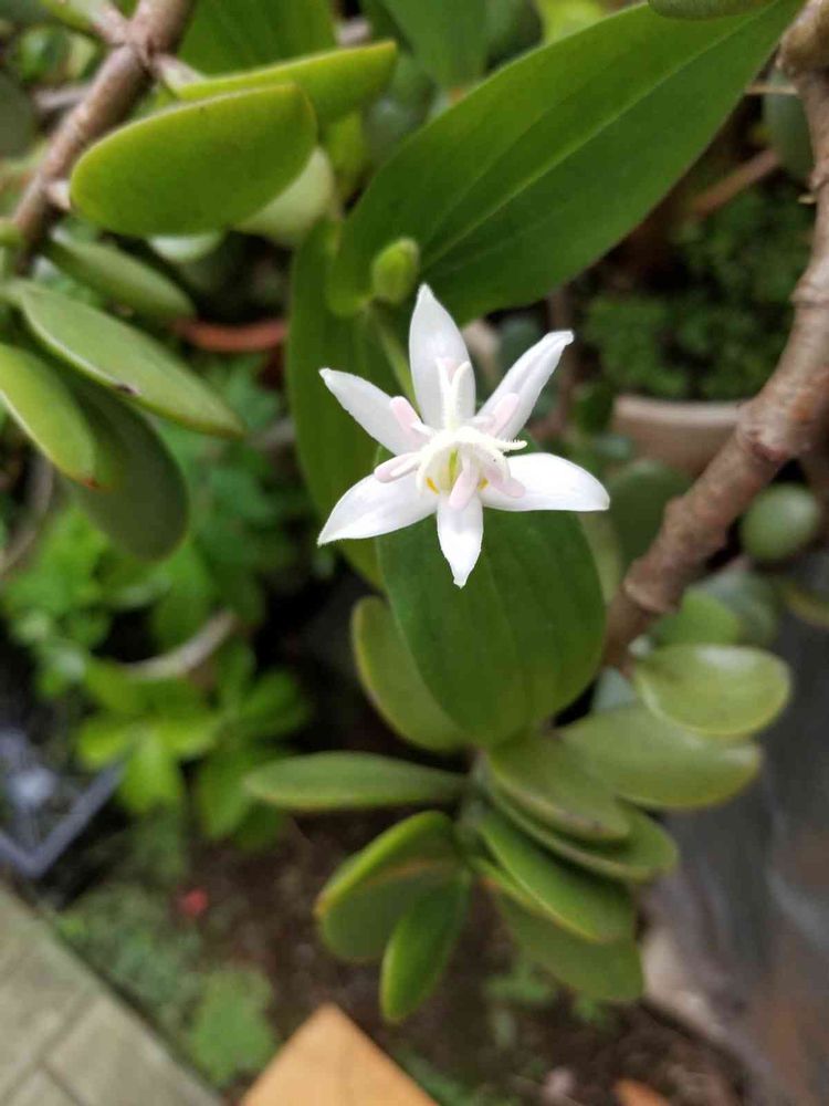 やっと、咲きました。小さな庭の鉢に、ホトトギス白。うっすらピンクがかっていて清楚な姿が好きです‼️