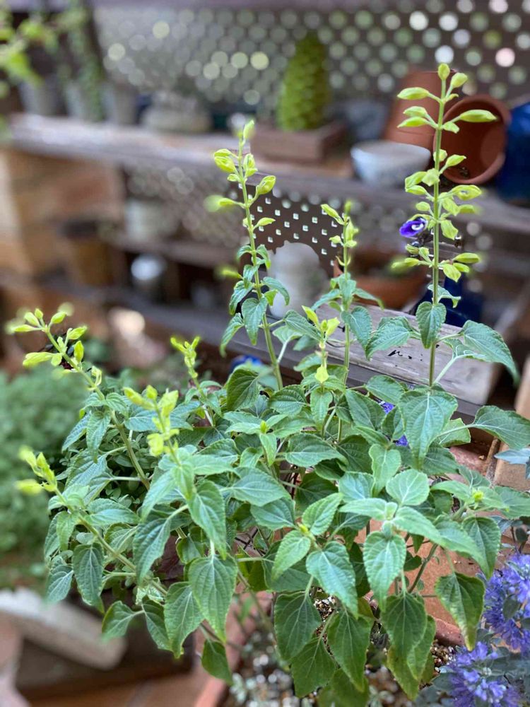 ライムグリーンのガクに紫の花のコントラストが美しいサルビア♡