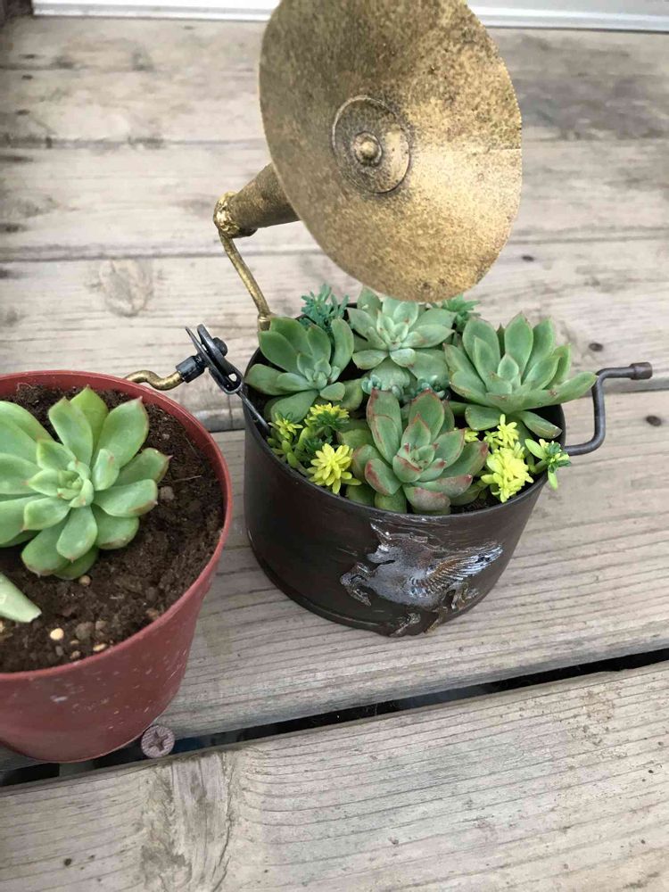 ちなみに鉢はMOCCO POOKOさんの蓄音機風リメ缶です❤️