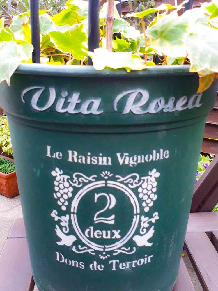 途中で諦めないように😓ブドウ畑っぽいステンシルでブドウ専用鉢にして完全に退路を絶ちました😁