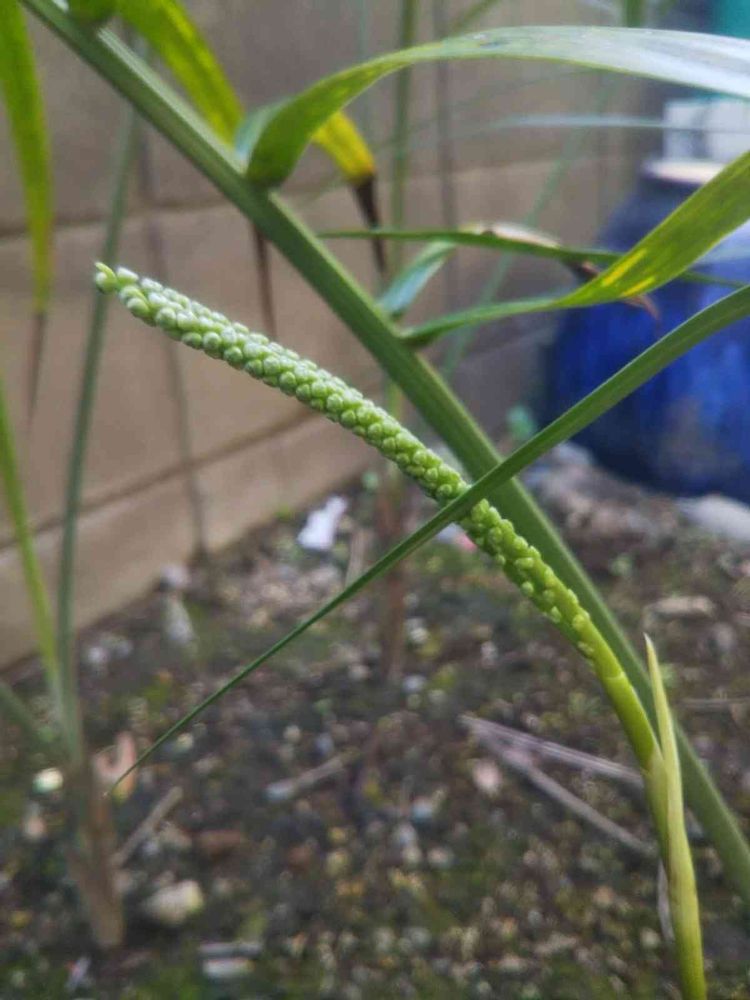 基本的にはテーブルヤシと同じく葉一枚につき花芽一本出るのだと思いますが、ラディカリスの花芽は少し弱く、花芽をあげられず終わってしまう葉が多いように感じます。