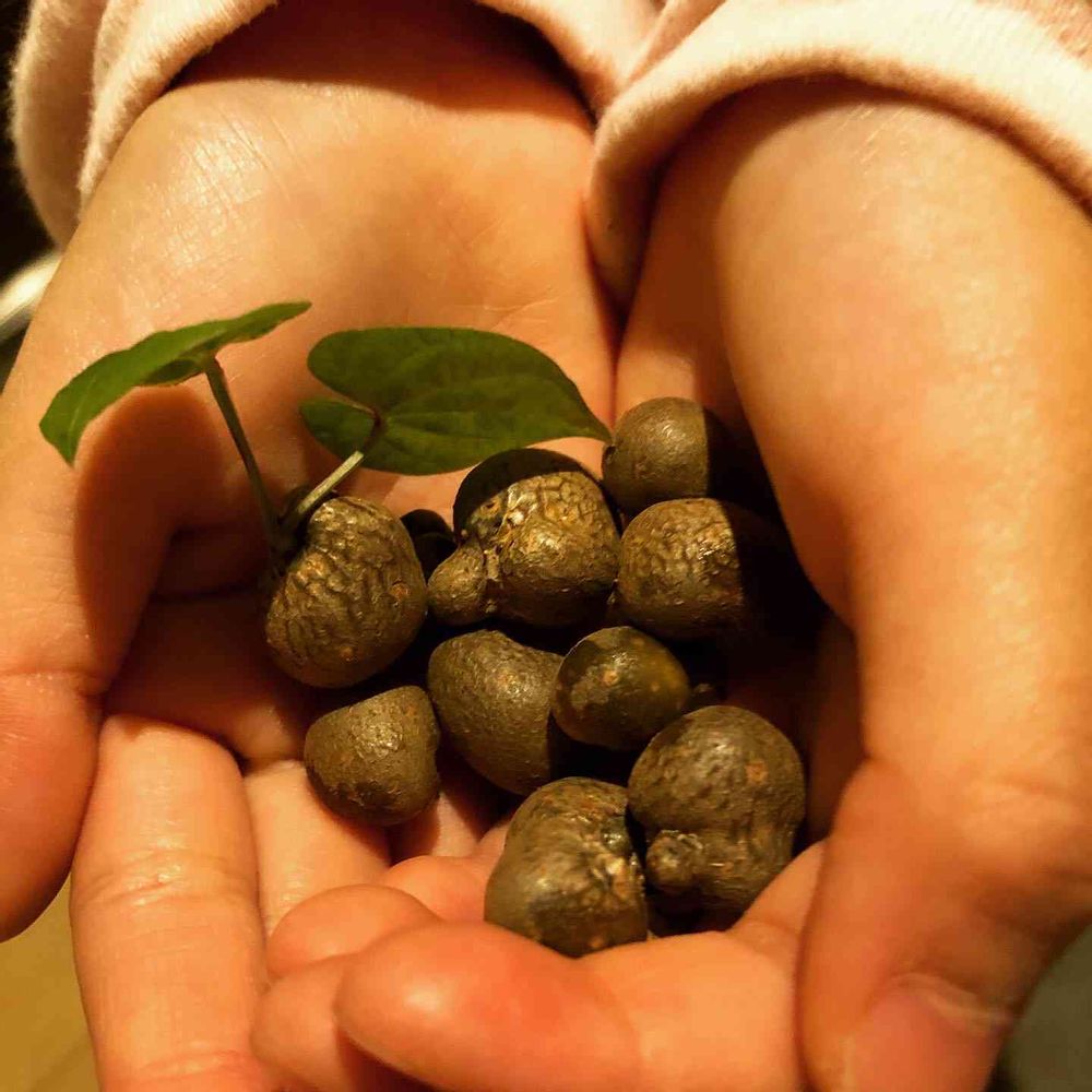 長芋のムカゴとりました。一つ、可愛いのが🌱
