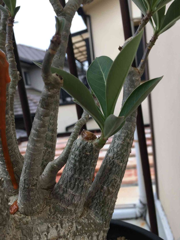 枝腐れアデニウムから出てきた新芽が新たな枝に!