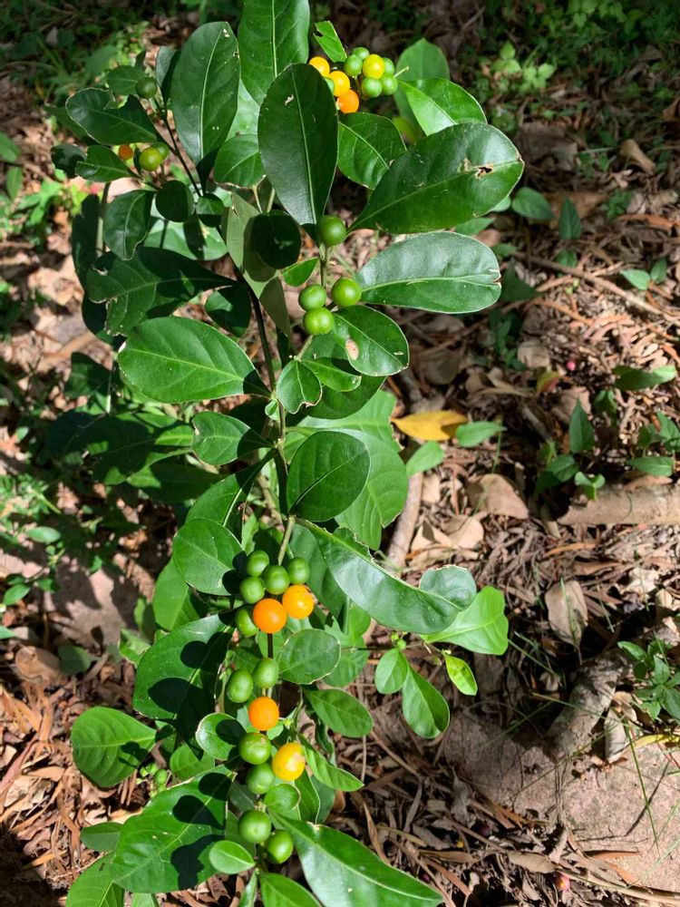 1メートルぐらい迄伸び白い花の後に緑色−オレンジ🧡色となります。