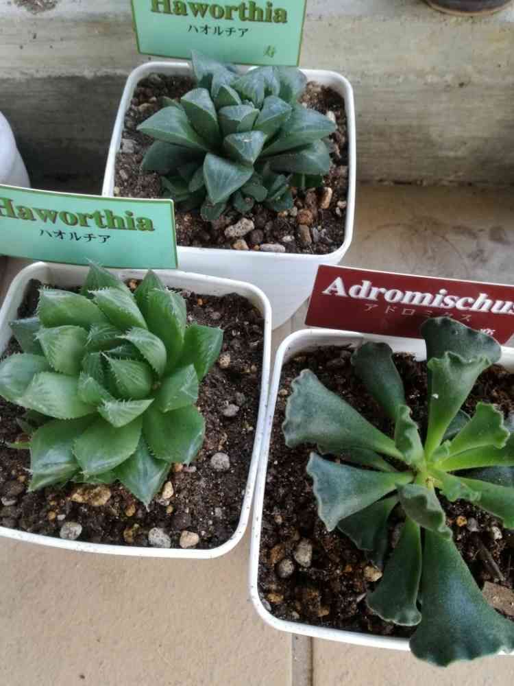 手前のアドロミスクスは名前がわかったのてすが、左側と奥のハオルチア二人の名前がわかりません。ハオルチアってしか書いてないんだもん😓❓❓❓