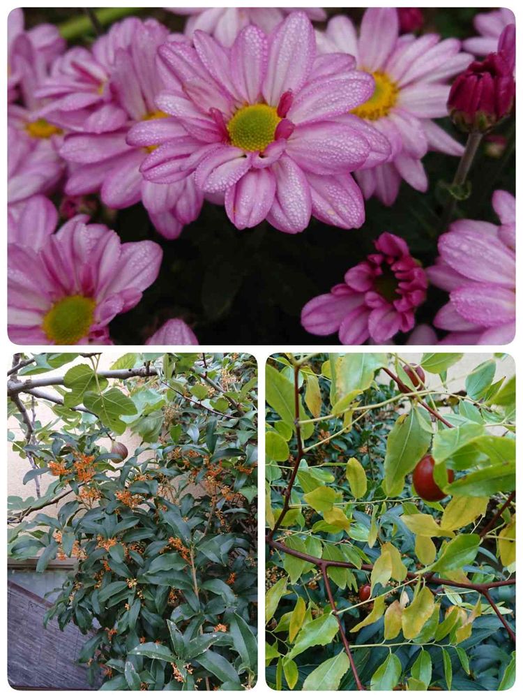 菊、金木犀、棗🍀菊の花に朝露がきらきら✨