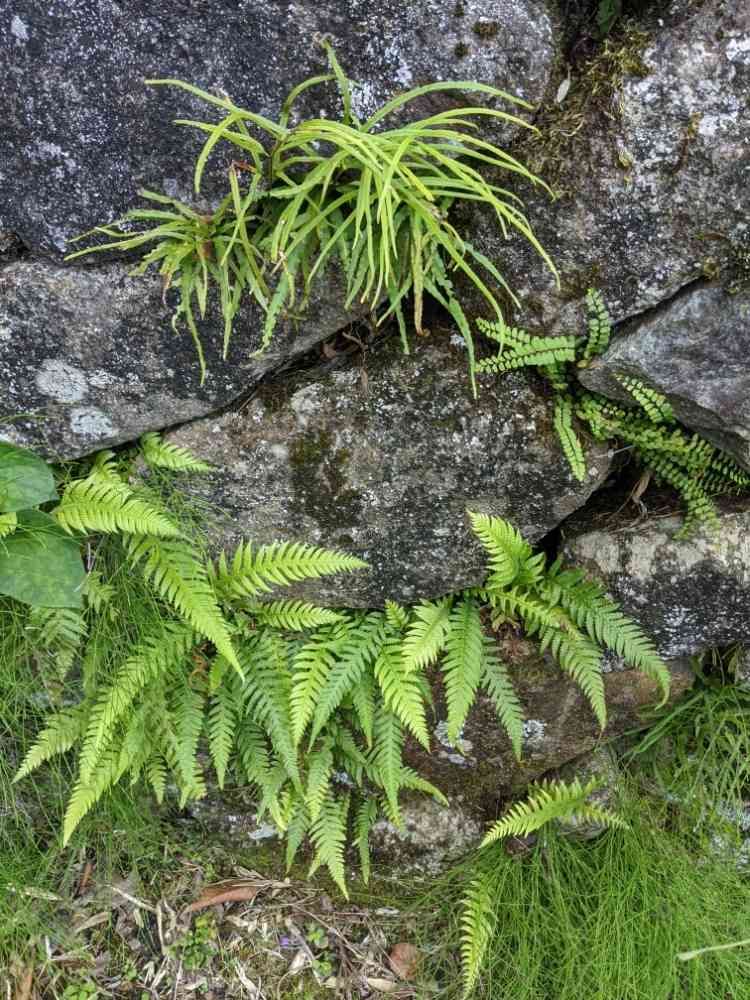 10月のシダのコラボは石垣から顔をのぞかせる3種類のシダです。