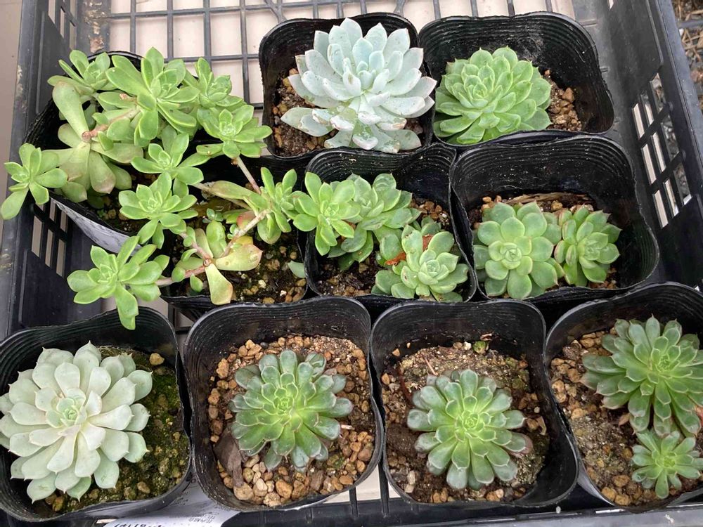 今朝私が行った時は多肉植物のトレーが二つで、少し離れた所にリトープスがありましたよ😊