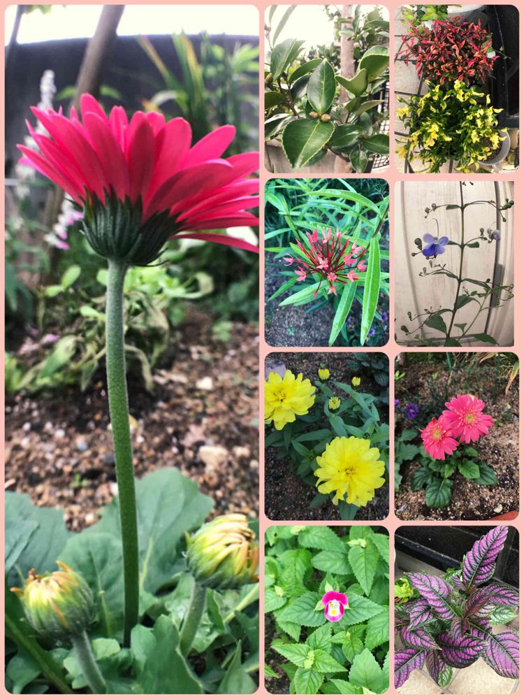 お庭に濃いピンクのガーベラがあって素敵ですね〜🥰🥰🥰