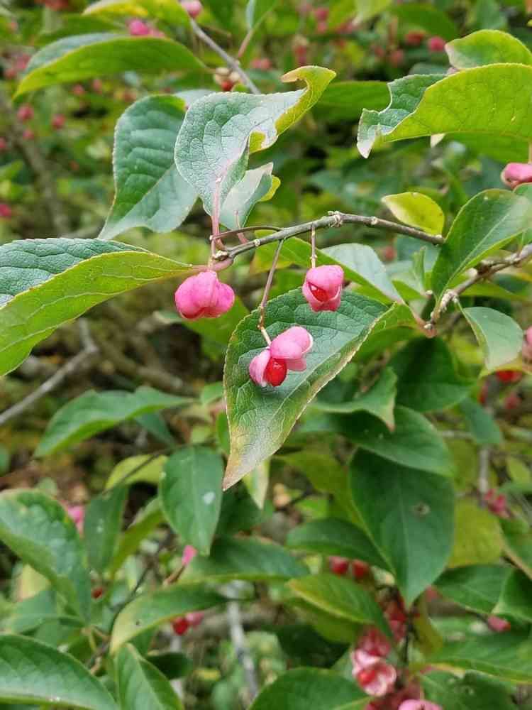可愛いピンクの実からオレンジの種が顔を出していました💕