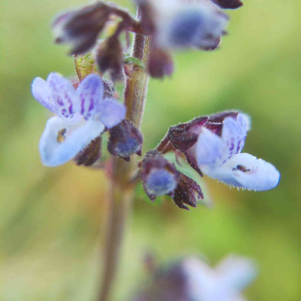 一つの花の大きさは1cmにも満たない青紫色の筒状の小さな花。どれも茎の片側によって咲いている。