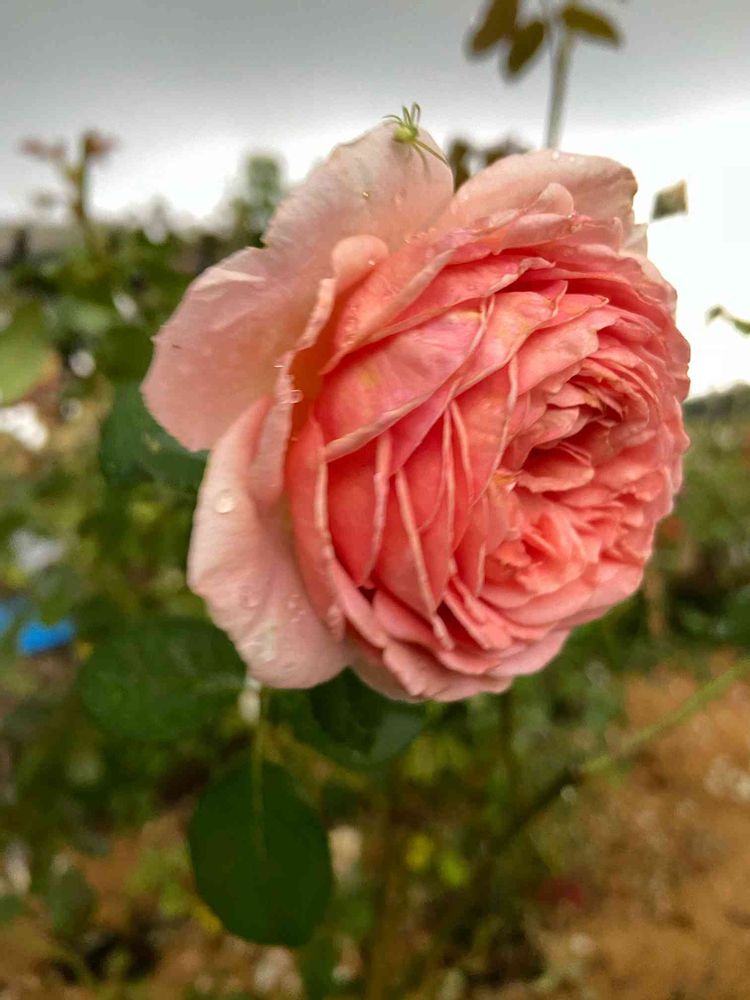 サーモンピンクが、鮮やかな薔薇。