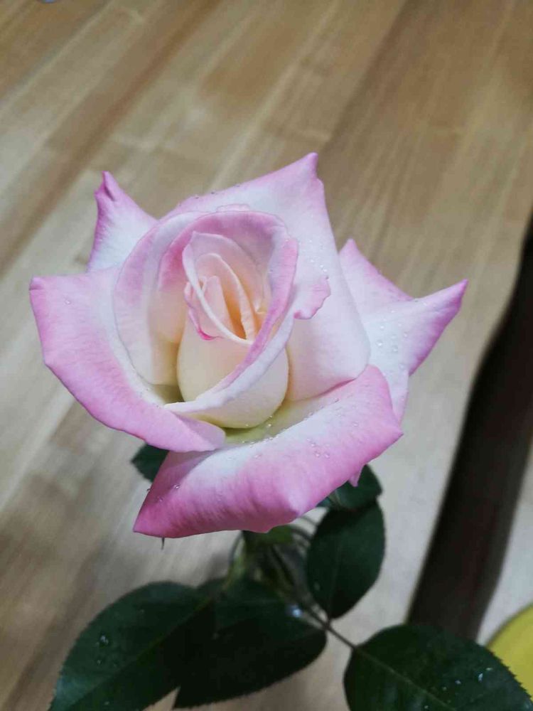 HTの夕霧。ひと足早く一輪咲いたので、切花で楽しんでいます。