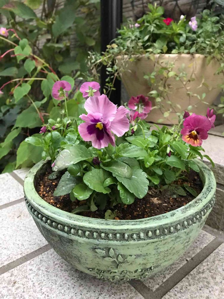 お気に入りの鉢にパンジーとビオラ💕