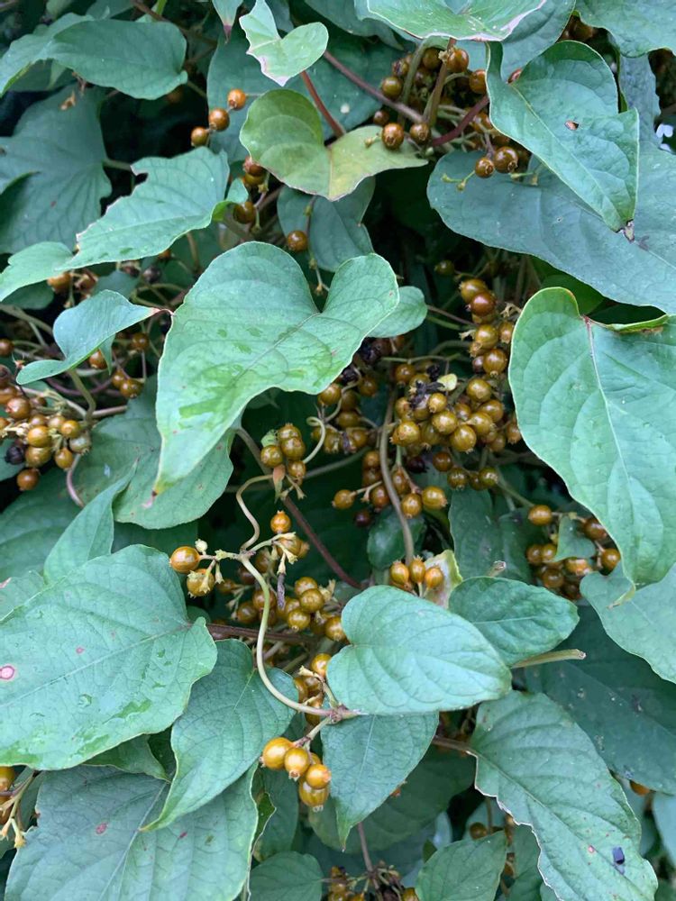 スモークグリーンの間に真鍮のような実が鈴なりになっていました。とても惹かれます。なんの実でしょうか。。。
