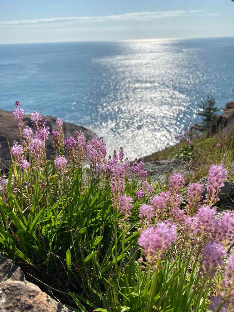 穏やかな光がさす海とツルボのピンク色でほんわかしました。💕☺️
