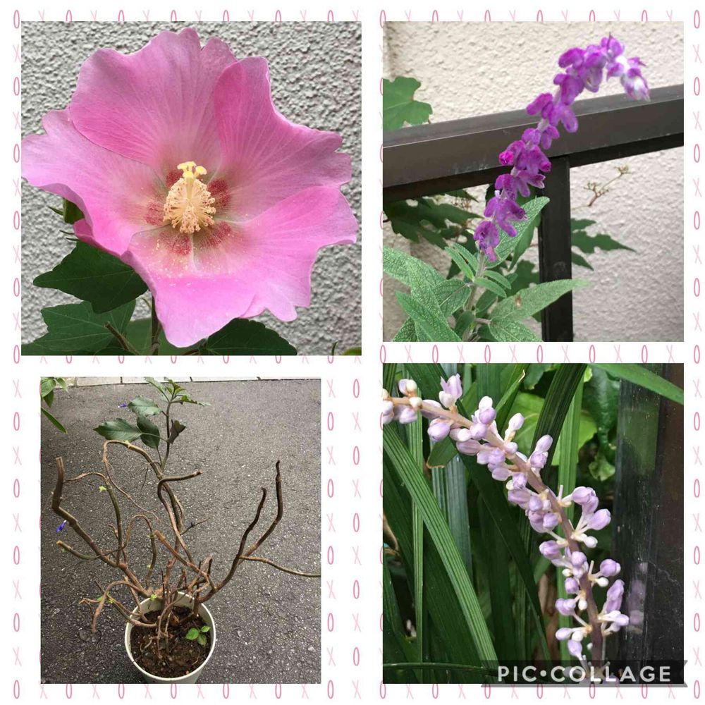 家の芙蓉とアメジストセージ、ヤブランが咲いています。ヤブランは邪魔なので、抜いていたのに花がきれいに咲きました。ごめんね。雨続きの後、一日良く晴れた日、水やりしなかったせいか、ちょっと見ない間に、フサフサの葉が落ちて茶色になって枯れたかと思ったら、先の方だけ、葉が残ってました。涼しくなり始めには時々こういう事があり、せっかく夏を越したのに、ガッカリします。この鉢はギリギリ助かりそうで良かったです。私の管理のせいかなぁ?