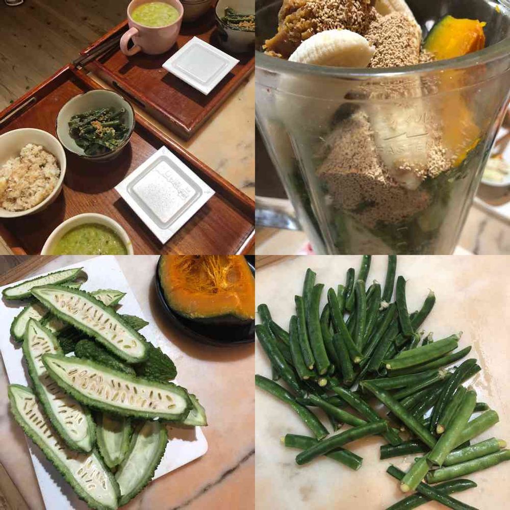 ニガウリ、バナナ、カボチャ味噌ジュース