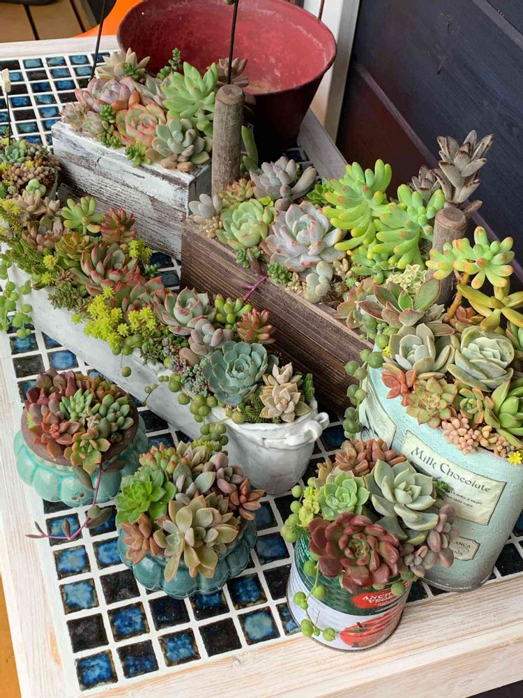 葉っぱが捨てられず😂葉挿し苗がたくさんできたので、リメ缶に寄せ植えして遊んでます😁