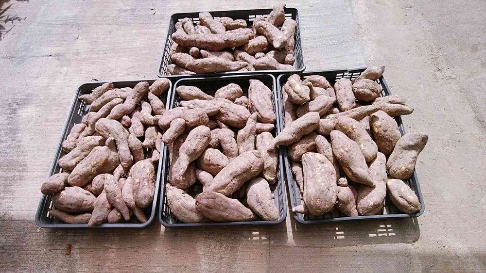 昨日、サツマイモを収穫しました。 自宅で天日干し中です