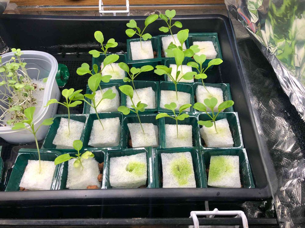 小松菜を植えてから約1ヶ月が経ちました。金魚水槽の上部分に設置した100均仕様の栽培ケース。