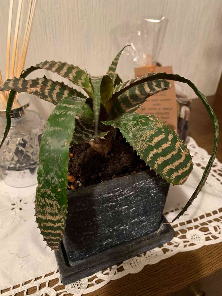 クリプタンサスっぽい感じがします。筒の中が見えないので確かではありませんが、あまり筒が深くないようならグランドブロメリアの何かではないでしょうか。