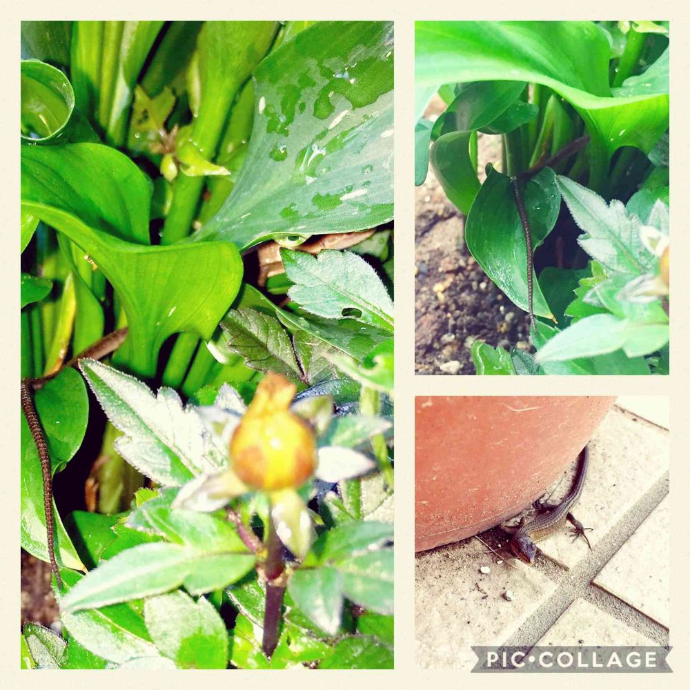 人懐っこい様で今度は寄せ植えの中でかくれんぼ🦎🎶👀✨(笑)