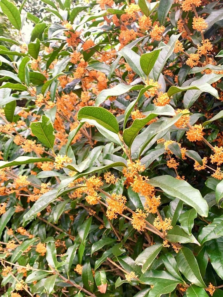 甘い香りがする方を見ると満開の金木犀の木が何本も❣️
