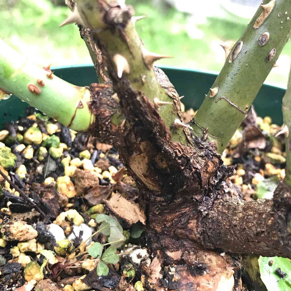 先月に花を咲かせて以来、葉色も悪くなんとなく元気がないなぁと思ってよく見たら、株元がぱっくりと裂ていました😭