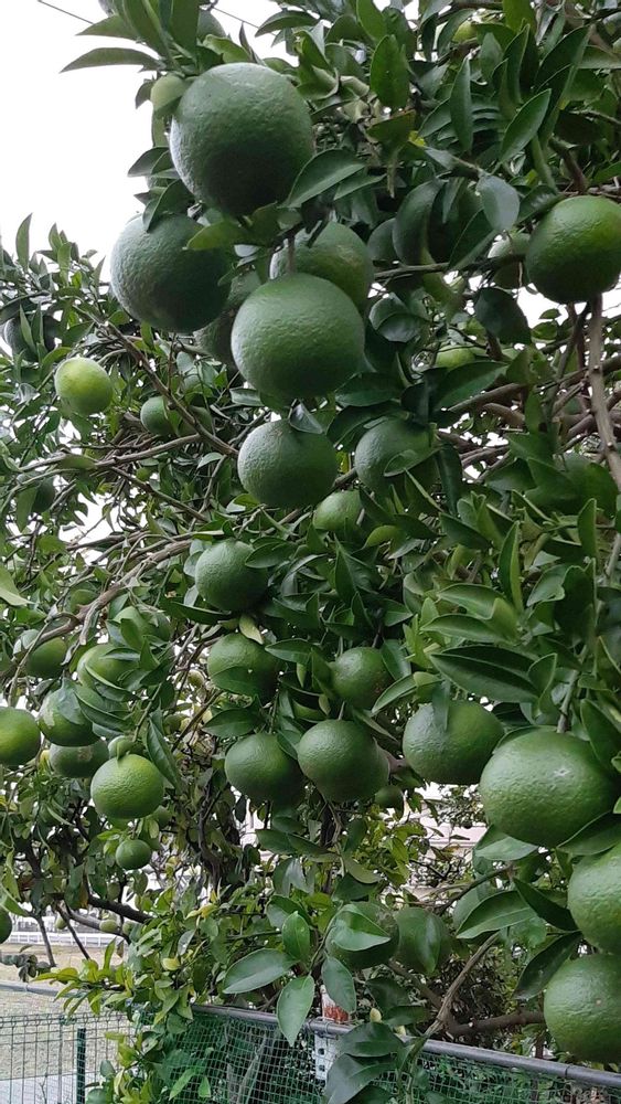 これから…まだ大きくなり…黄色く色づいて…12月頃収穫…まだ酸っぱい!…しばし追熟です💖🍊🎶🍊💖