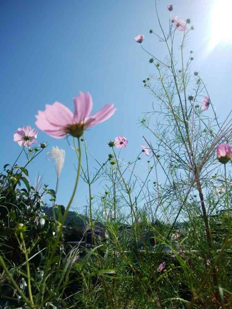 綺麗な青空の下秋桜に見送られ嫁ぐ人は…きっと幸せになれますね💕