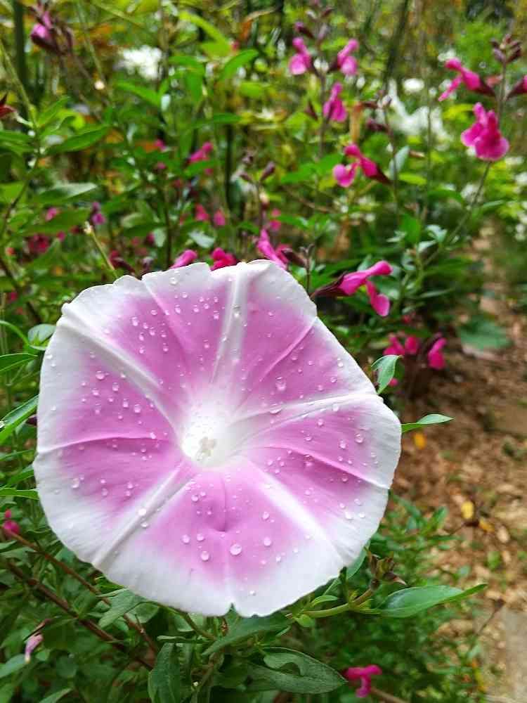 朝、ちよっと雨が降ったあと、庭にでたら、朝顔が一輪、もうそろそろ終わりですね。😊