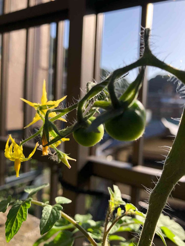 秋ミニトマトが実をつけてくれて 今度は赤く熟してくれることを楽しみにしています🎶🍅🎶