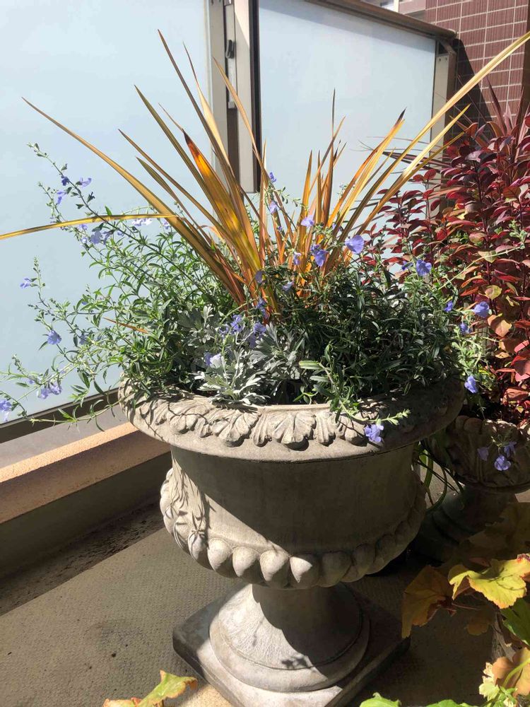 スカイブルーとゴールドとシルバーの寄せ植え!