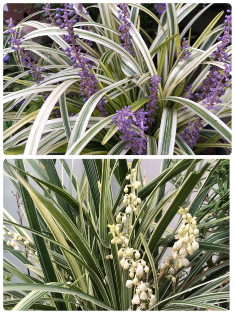 上の斑入りヤブランは、去年よりもっさりとして花付きがとってもいいなぁ