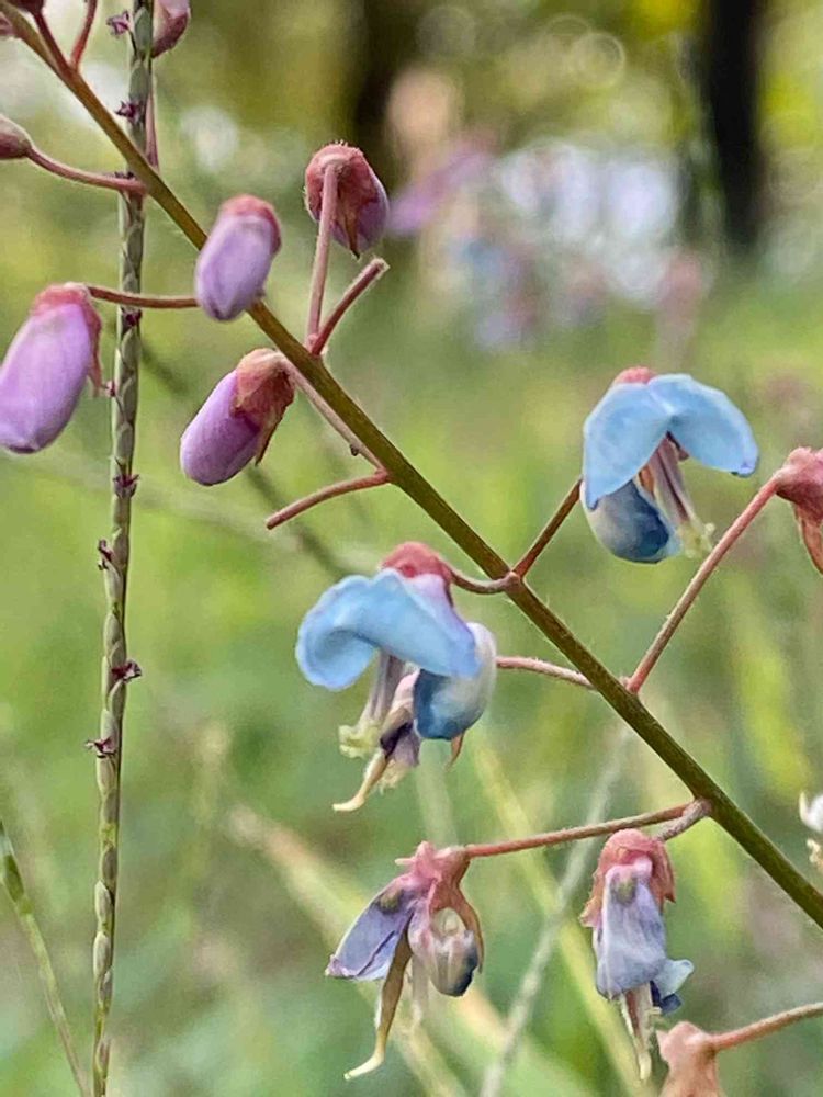 アレチノヌスビトハギの花が青色で咲いてる。小高い公園