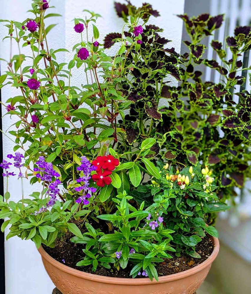 あちこちから抜いて、切り戻しして、入れ替えて、1つも買わずに「寄せ(集め)植え」になりました😅
