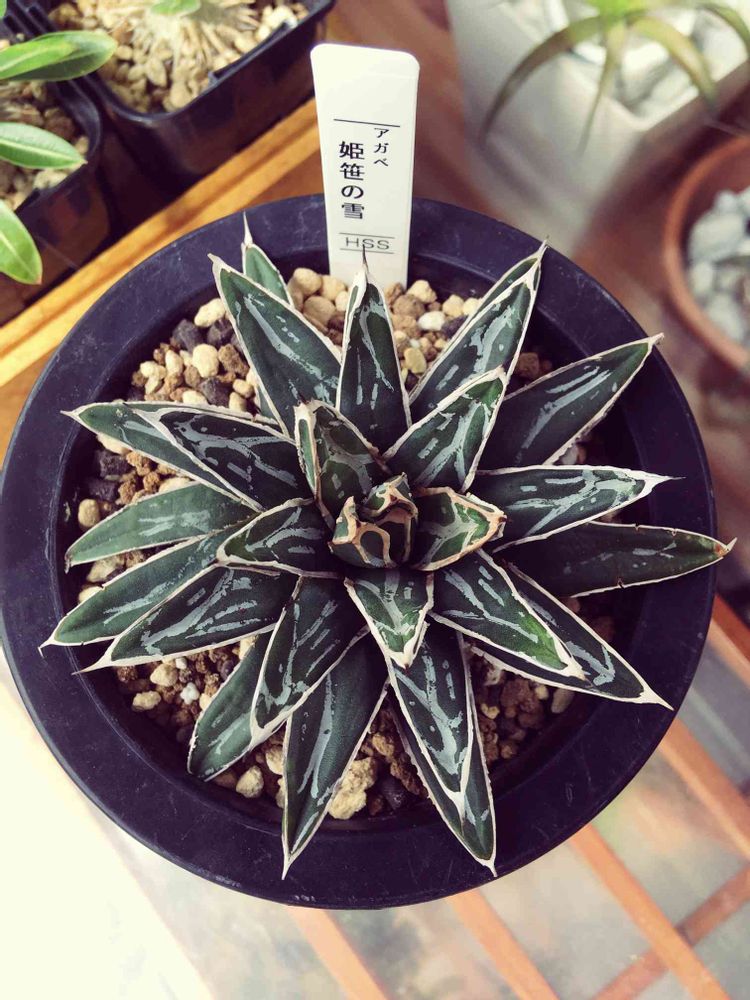 アガベ姫笹の雪です。笹の雪を元に日本で作出され、大きくならないタイプらしいです。