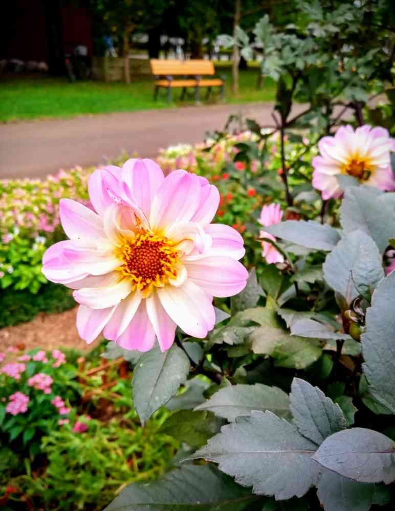 ダリヤも❤️後ろにも花が沢山咲いてますね🎵💕💜❤💚💗👍