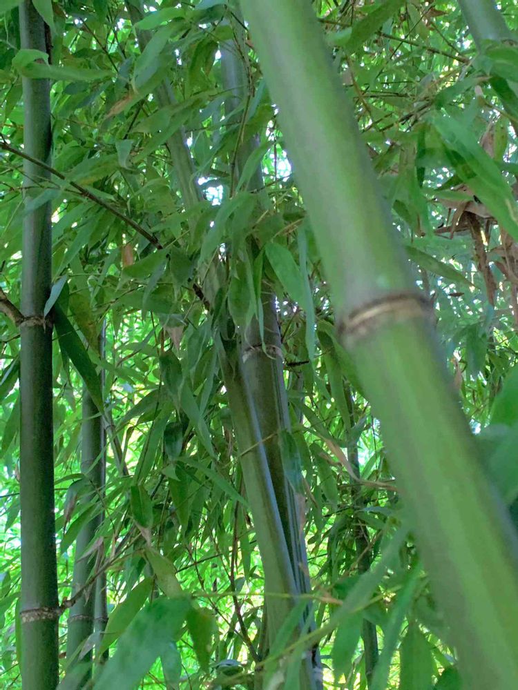 「幹が全体的に青々している(モウソウチクは節の輪の下が特に白くなる, ハチクは幹が全体的に白い)」
