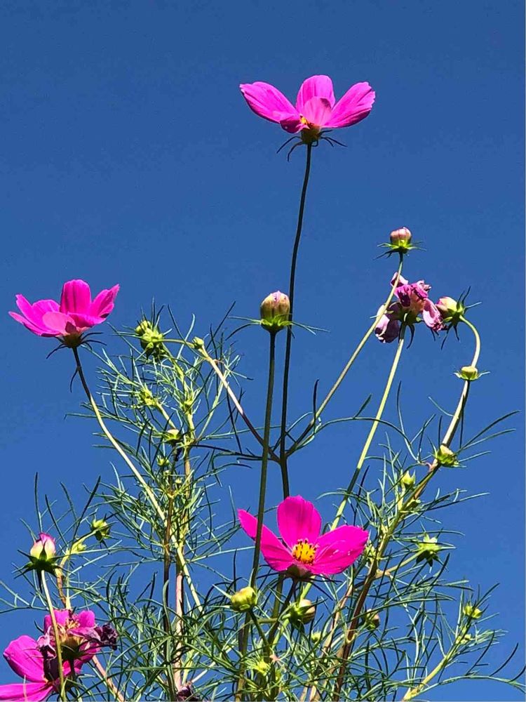 前回のキバナコスモスと言い、このピンクも背景の青空に映えて綺麗だ〜😄