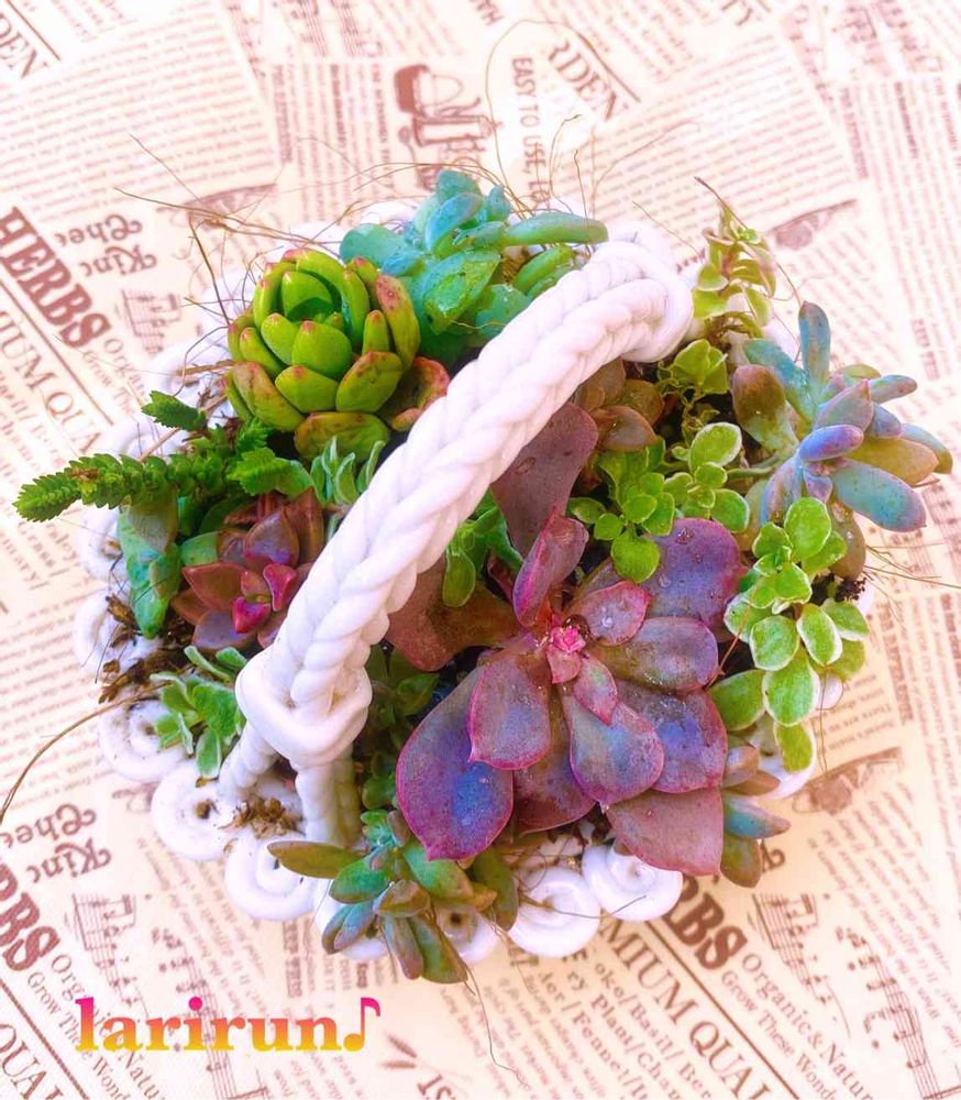 これは作ったんですか?バスケット🧺の手持ち部分あたり寄せ植え大変でしたか?とっても綺麗に寄せ植えされてますね❣️